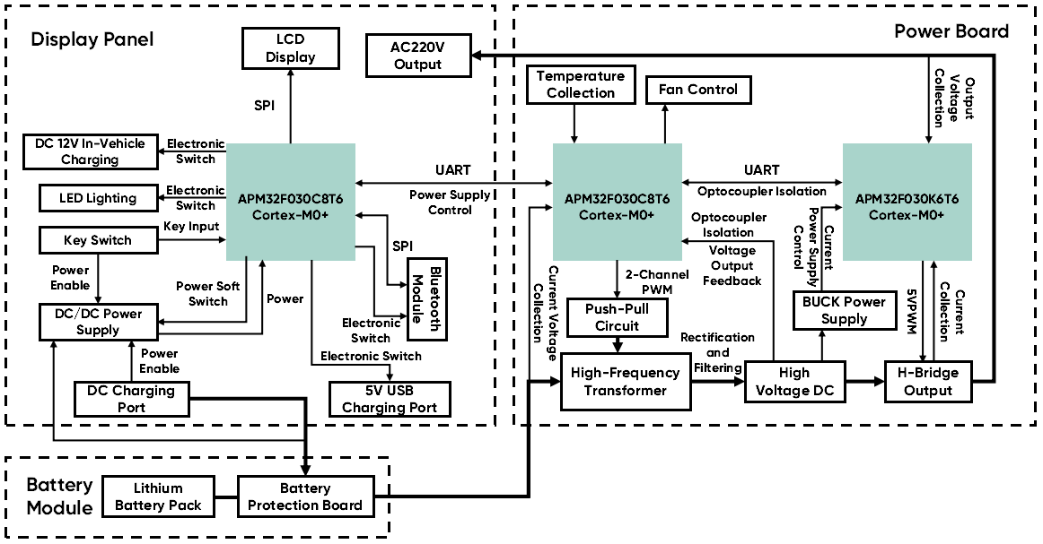 APM32F030 Portable Power Station Solution Block Diagram