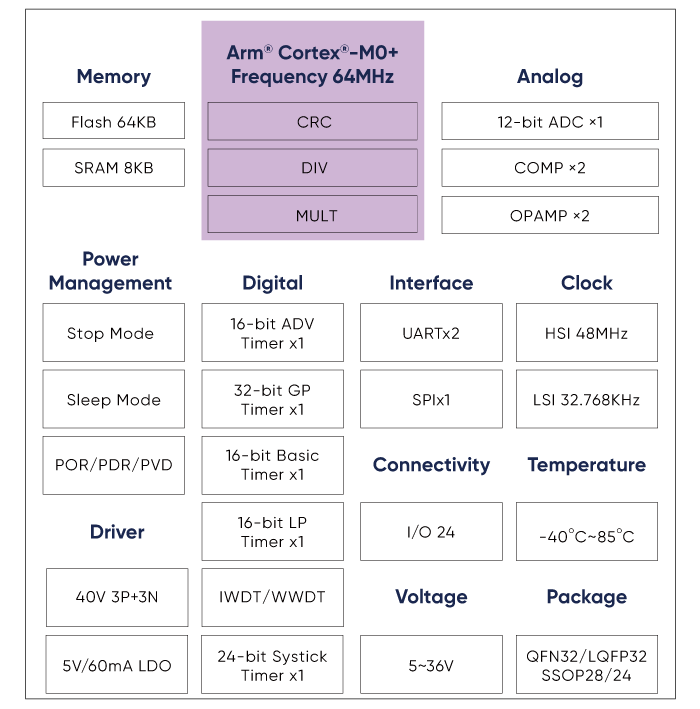 - Built-in 3P+3N 40V Gate Driver