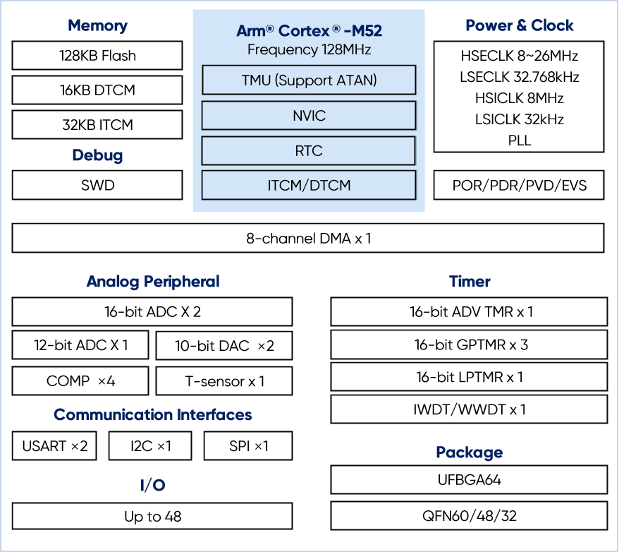 - LSECLK: 32.768kHz crystal/ceramic oscillator