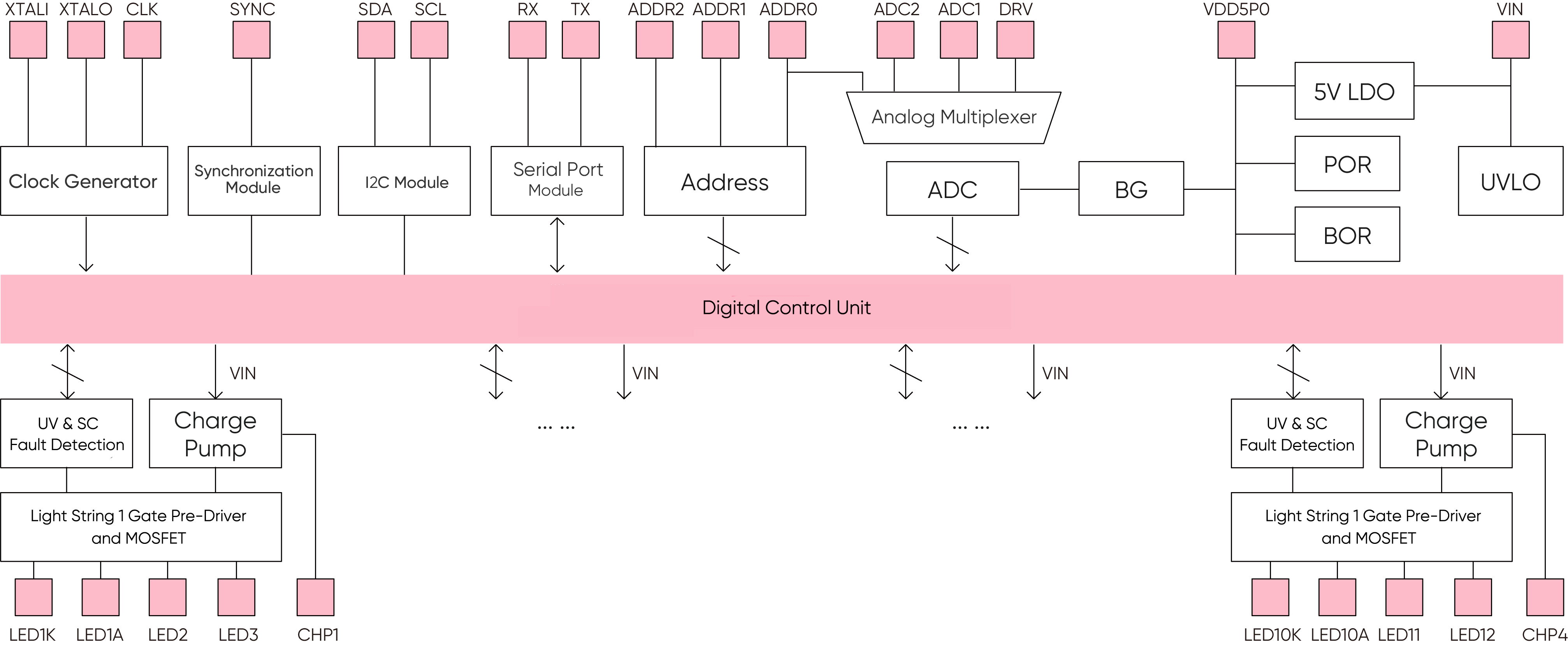 The GALT61120, Geehy's first automotive headlamp LED driver IC, improves the interoperability of headlamp devices and driving safety. With 12 integrated bypass switches for independent pixel-level LED control and programmable 10-bit PWM dimming, it supports innovative headlamp lighting functions. Rich peripherals allow flexible use in multiple headlamp systems, significantly reducing system cost and power consumption. It is widely used in automotive headlamp systems, high-brightness LED matrix systems, ADB adaptive headlamp systems, animated daytime running lights, intelligent interactive matrix headlamps, and intelligent projection headlamps.