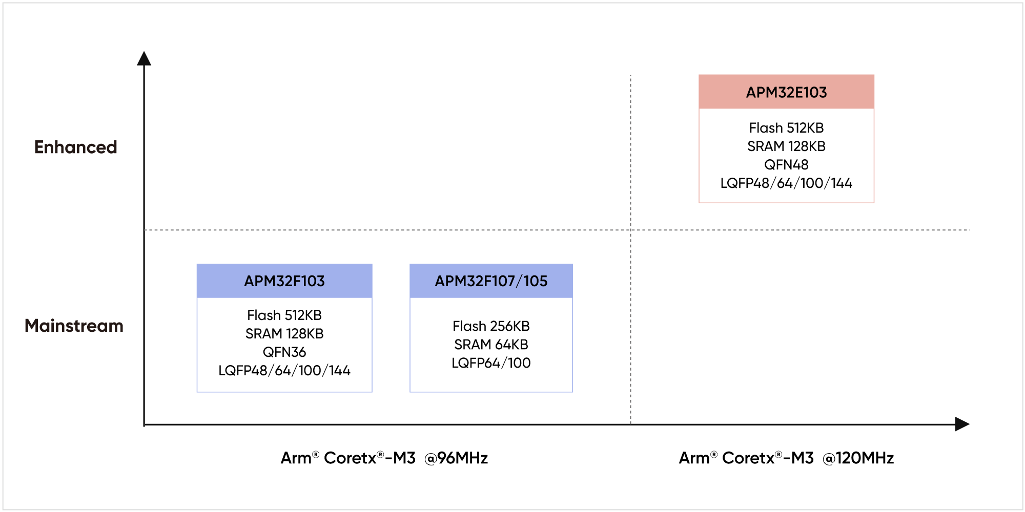 This MCU series, built on the Arm® Cortex®-M3 core, features efficient data processing, design flexibility, and high stability and reliability across its entire product range. With abundant analog peripherals and communication resources, these MCUs exhibit outstanding performance and power consumption characteristics, ensuring a stable, long-term supply for customer application designs.